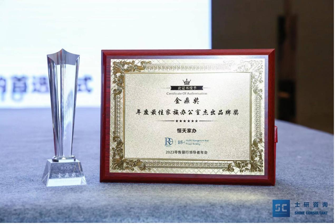2023年3月,2023零售银行领导者年会暨第十八届财富管理与私人银行论坛在上海召开,本次大会以“洞察零售变革 优化财管布局”为主题,用前瞻的眼光剖析行业发展趋势,围绕数智化建设、场景生态构建、全渠道协同发展、差异化客群经营等方面,与行业内资深专家进行深度探讨。在此次活动中,青岛恒天睿信家族办公室有限公司(简称:恒天家办)凭借前瞻性的战略发展,优秀的咨询服务能力斩获“年度最佳家族办公室杰出品牌奖“